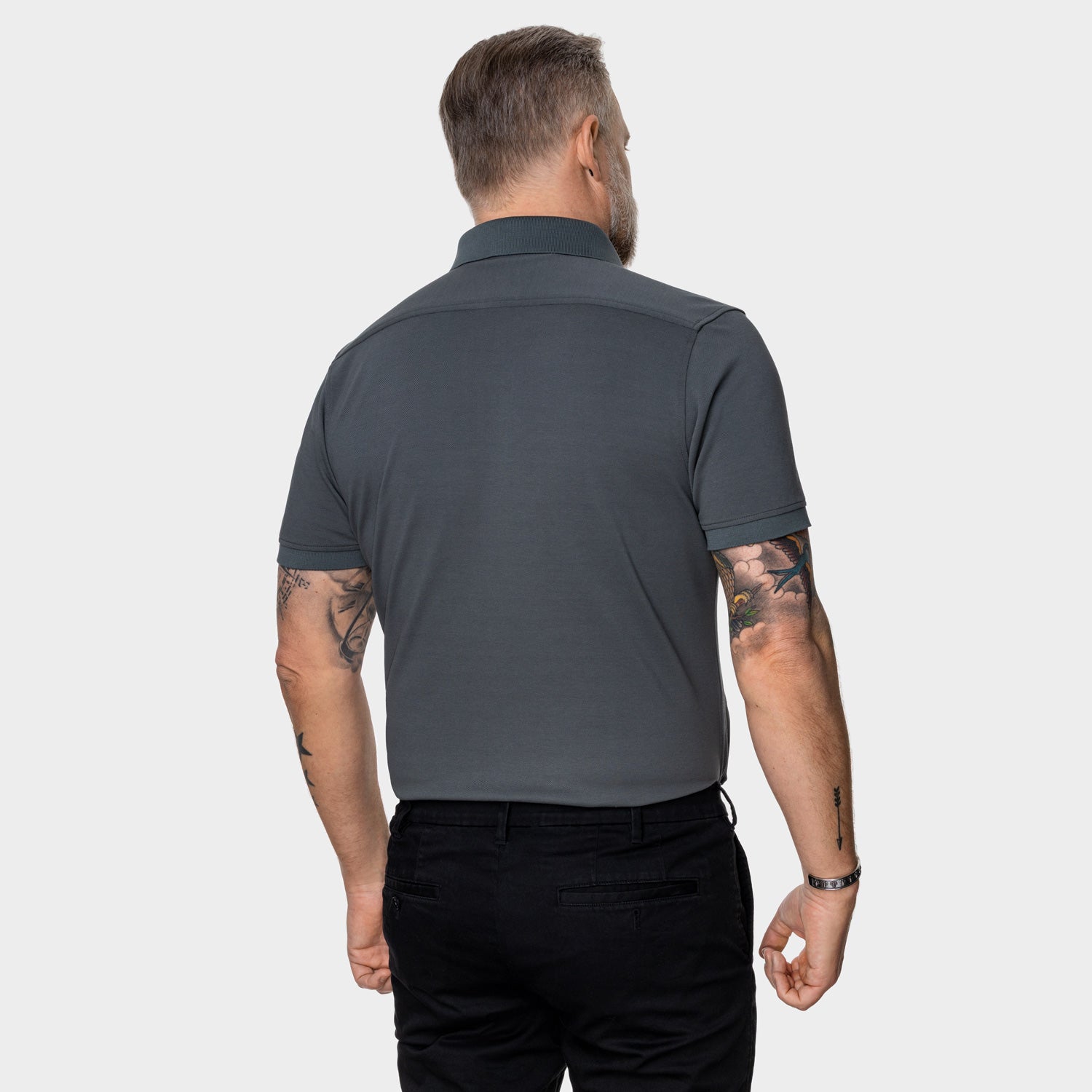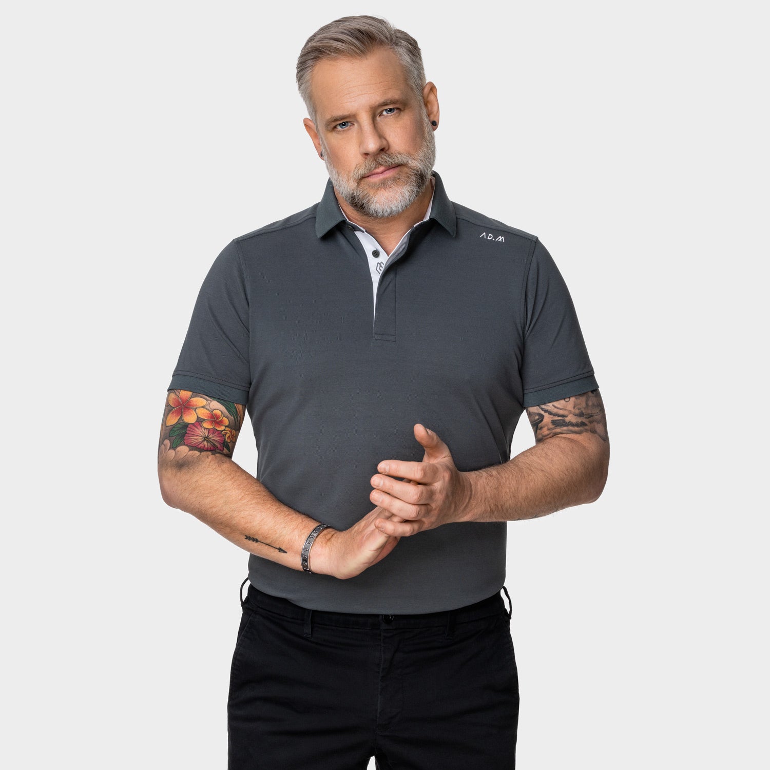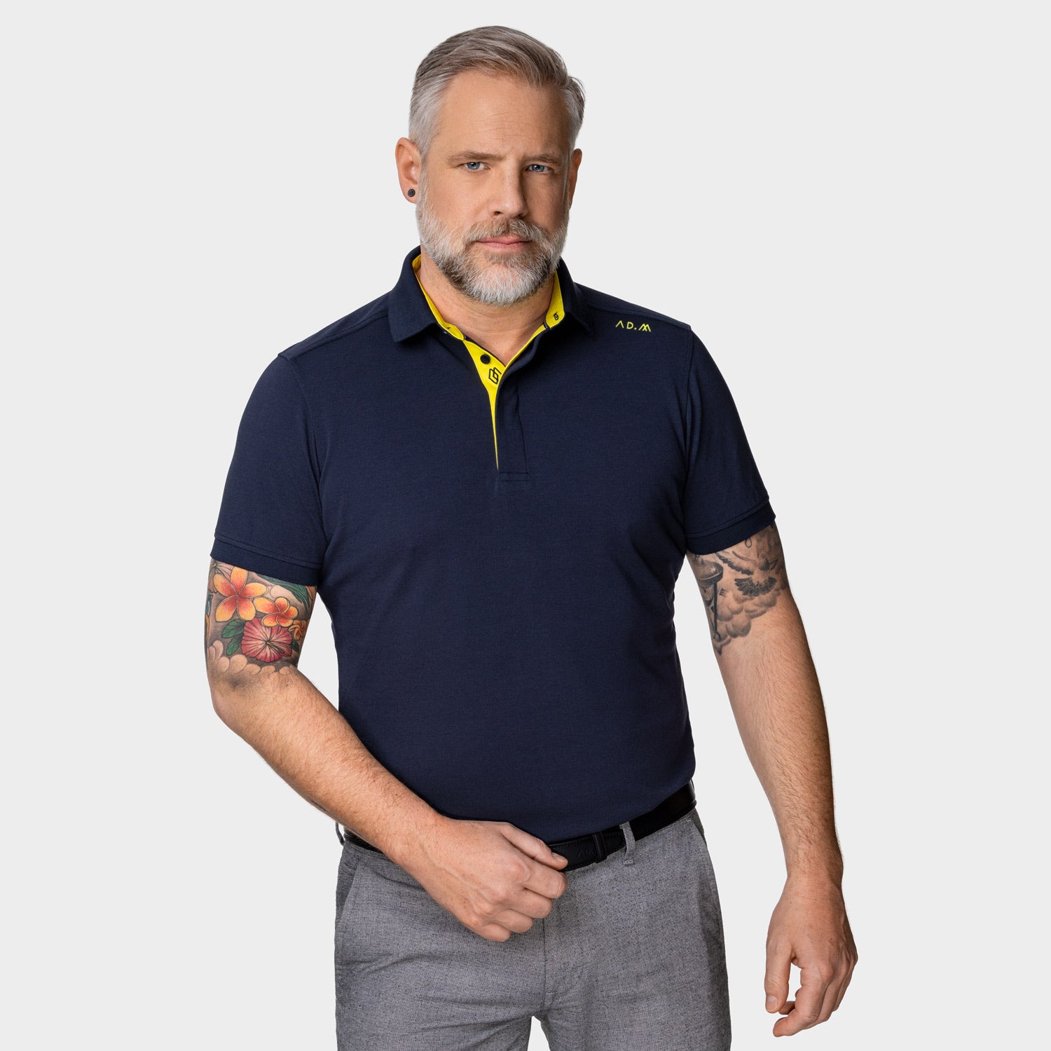 Ebenfalls nach dem Vorbild klassischer Business-Hemden verfügen alle AD.M Poloshirts über einen präzise ausgearbeiteten Schulterschnitt . Diese besondere Schnittführung betont die Schulterpartie, verleiht der Silhouette mehr Ausdruckskraft und sorgt gleichzeitig dafür, dass das Polo am Rücken elegant und faltenfrei fällt.