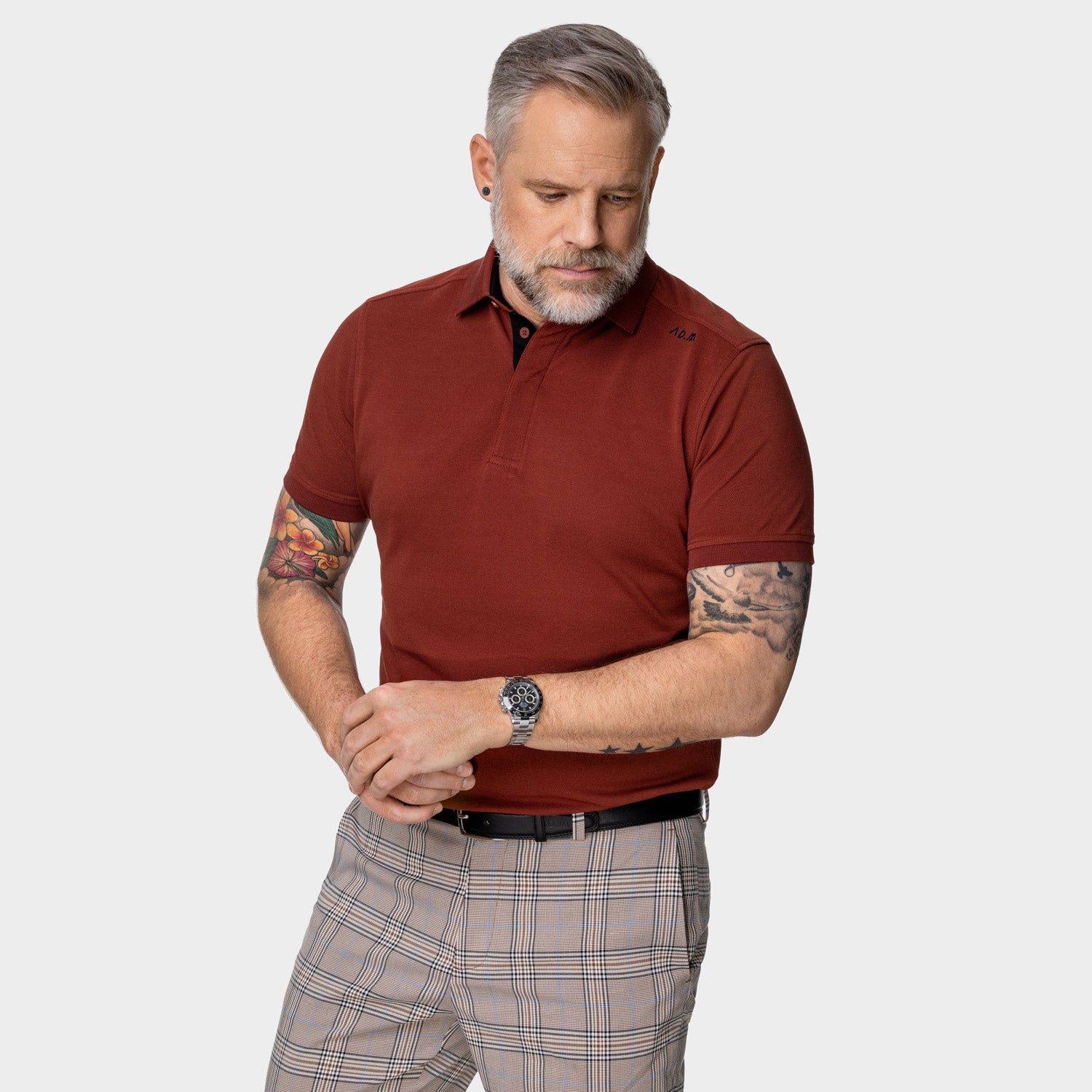 Oliver ist 173cm gross und 75kg schwer. Er ist schlank und trägt die AD.M Produkte gerne etwas lockerer. Er bevorzugt die Grösse M. Yannick ist 180cm gross und 81kg schwer. Er ist athletisch und trägt die AD.M Produkte gerne etwas enger. Er bevorzugt die Grösse M. Peter ist 187cm gross und 90kg schwer. Er ist schlank und trägt die AD.M Produkte gerne etwas enger. Er bevorzugt die Grösse L. Michael ist 185cm gross und 93kg schwer. Er ist etwas stattlicher gebaut und trägt die AD.M Produkte gerne etwas enger. Er bevorzugt die Grösse L. Mirko ist 186cm gross und 97kg schwer. Er hat einen kleinen Bauch und trägt die AD.M Produkte gerne weder zu eng noch zu weit. Er bevorzugt die Grösse XL. Du hast weitere Fragen zur Grössenfindung? Schreibe uns ungeniert eine Mail an info@the-polo.com .